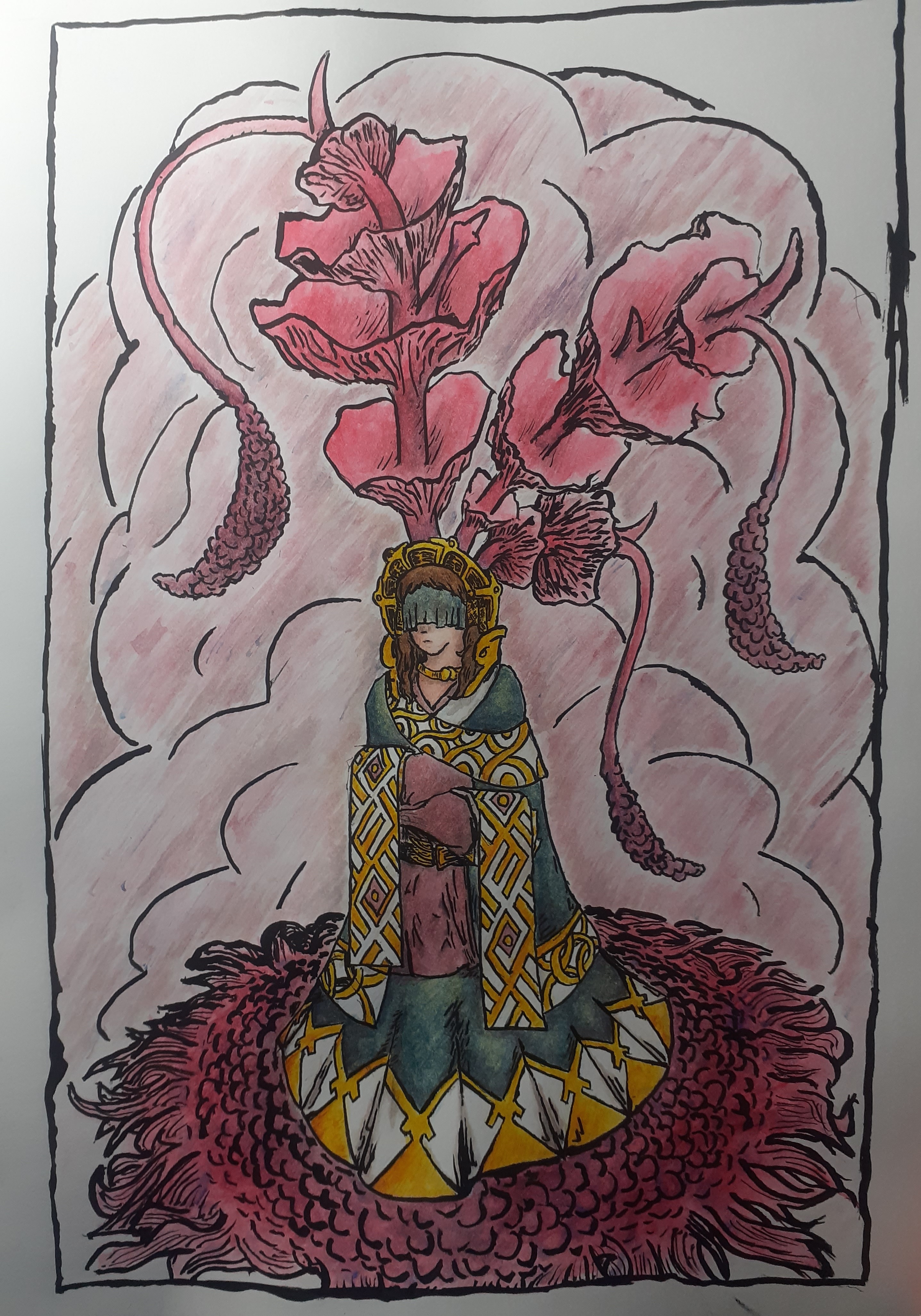 Aside from getting a character idea I've had out, this drawing was also meant to test out various supplies and design motifs I've wanted to do, and either way, both are steps in shaping Chimeric.